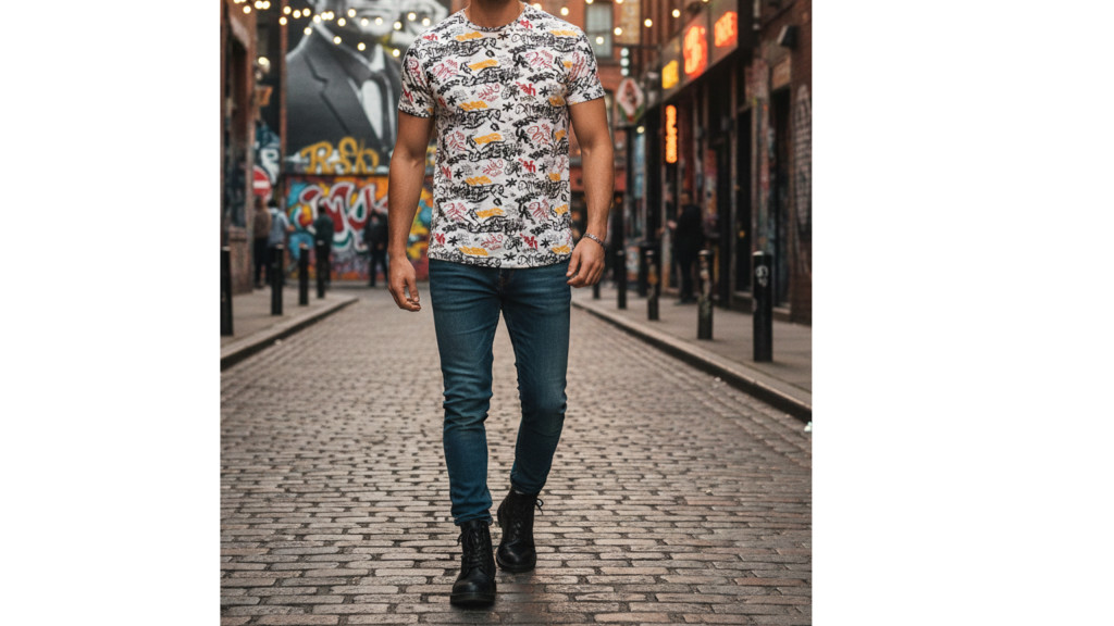 Legyen a stílusod olyan egyedi, mint egy utcai falfestmény: ez a vibráló, színes feliratokkal díszített póló a modern street-art világát idézi.