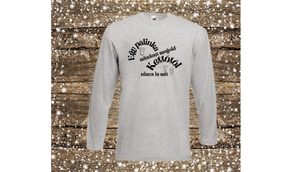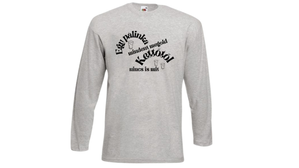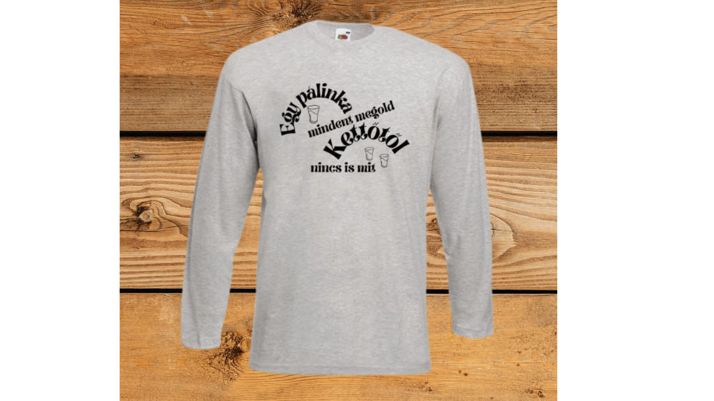 Egy pálinka mindent megold,kettőtől nincs is mit-szürke hosszú póló
