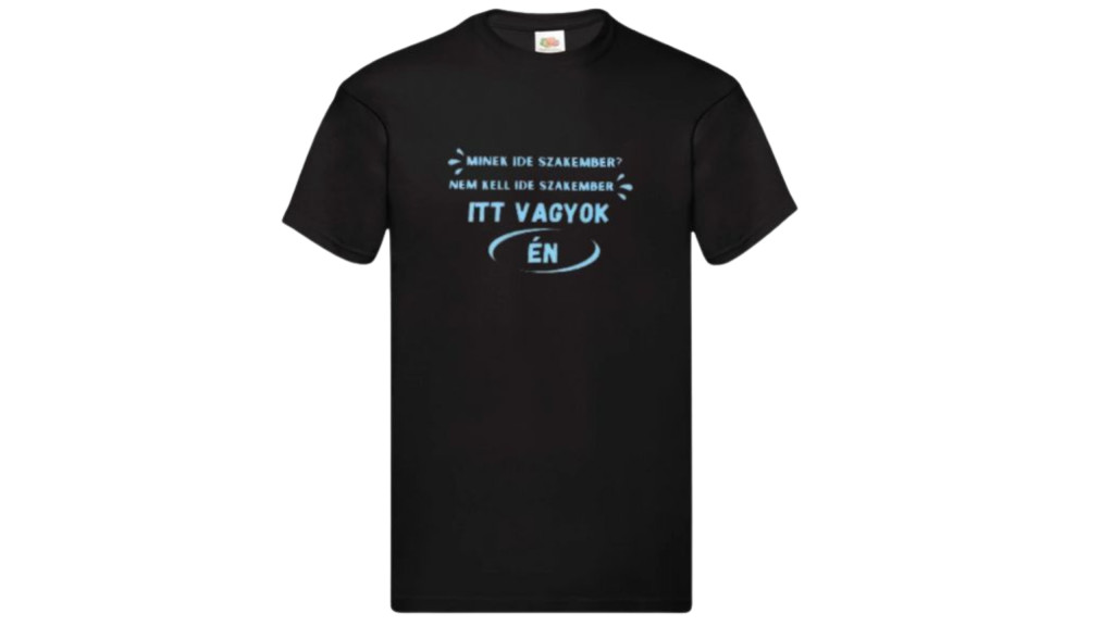 Minek ide szakember? Nem kell ide szakember Itt vagyok Én-férfi/Unisex póló